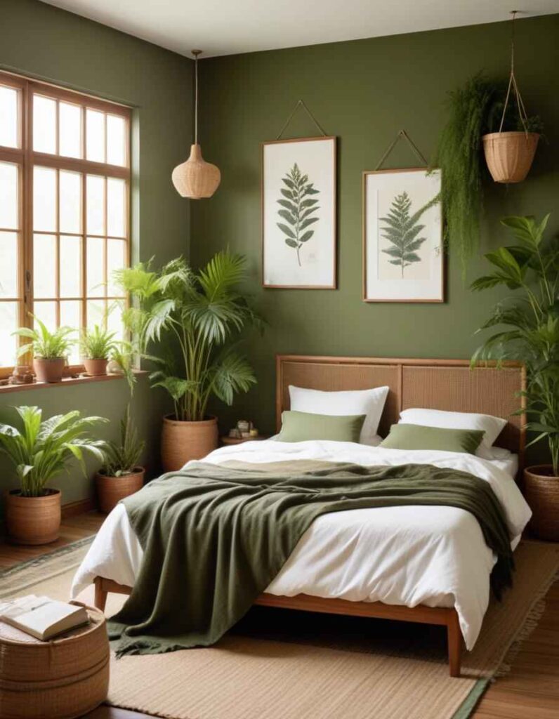 Stick to a palette of mossy greens, soft browns, and creamy whites for a grounded, peaceful vibe.